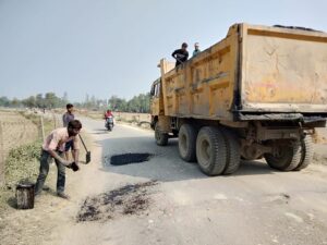 खबर छपने के बाद हरकत में आए अफसरों ने शुरू कराई सड़क की रिपेयरिंग