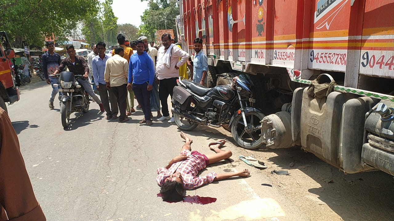 खड़े ट्रक से टकराया बाइक सवार गंभीर रूप से हुआ घायल