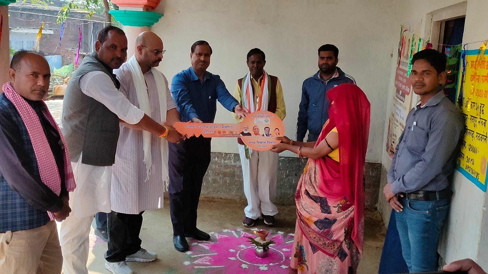 प्रधानमंत्री आवास ग्रामीण योजना अंतर्गत लाभार्थियों को चाबी देकर कराया गया गृह प्रवेश