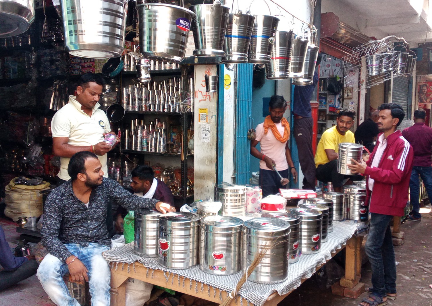 बर्तनों की दुकान में भी दिखी ज्यादा भीड
